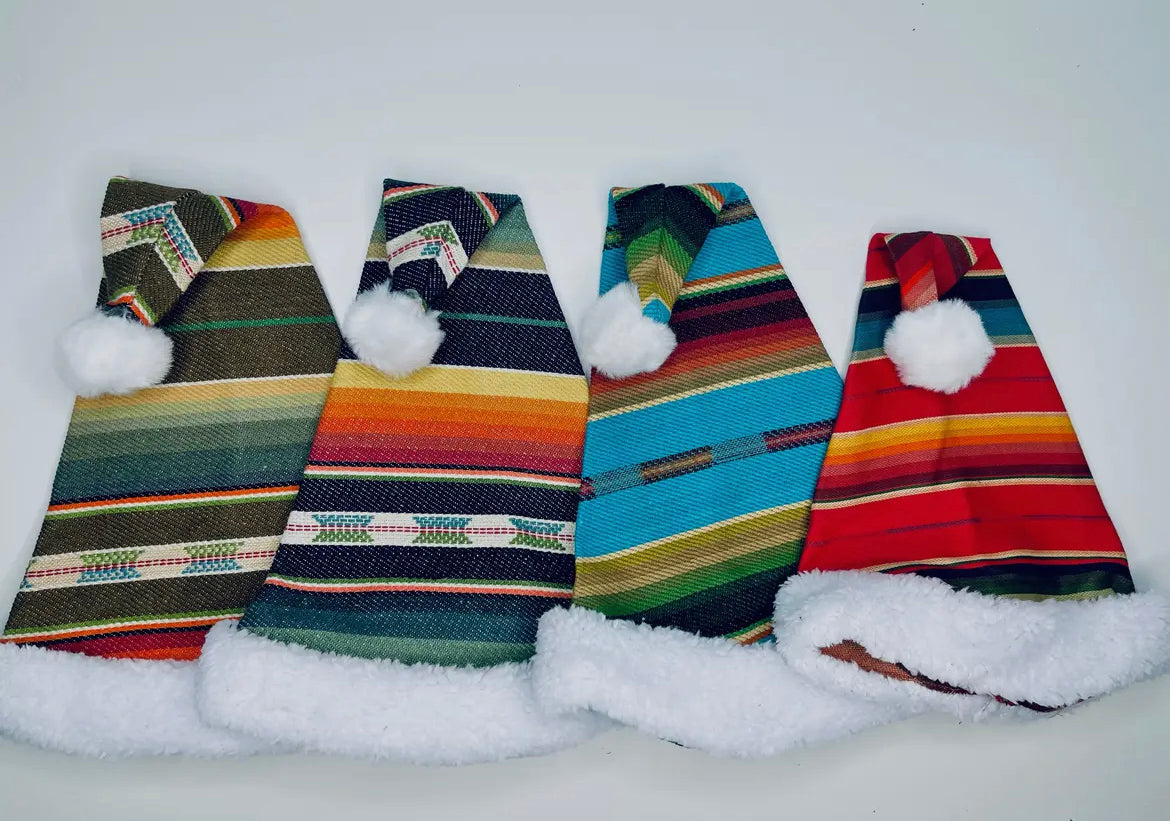 Handmade with authentic Mexican serape fabric with a Sherpa lining and pom